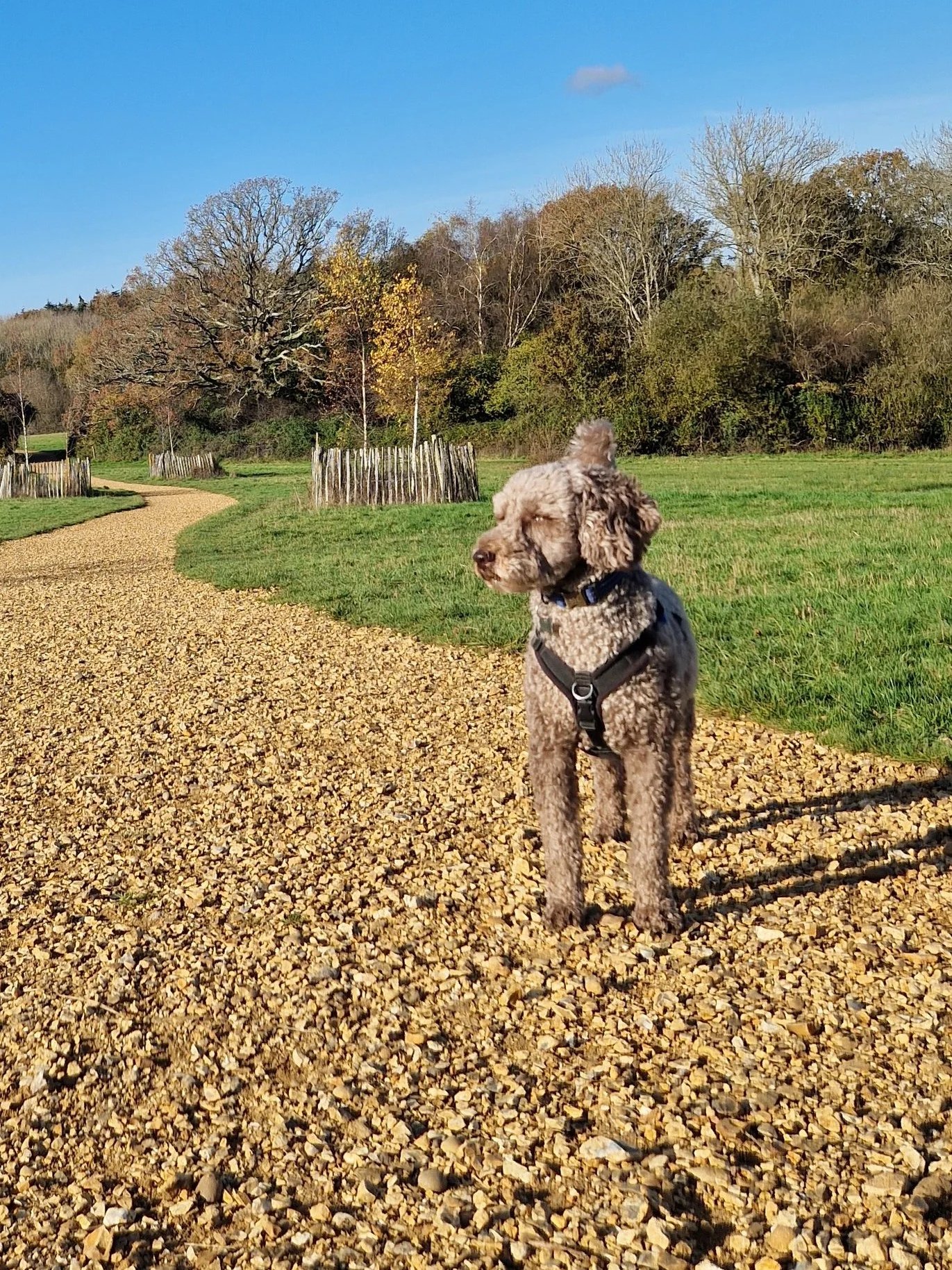 This is Moss. He is a Labradoodle who has been keeping us company since we got him in December 2020. Thankfully, his breeding means he is a small Lab-Poodle cross, but has the ability of a large labradoodle to take up lots of space!