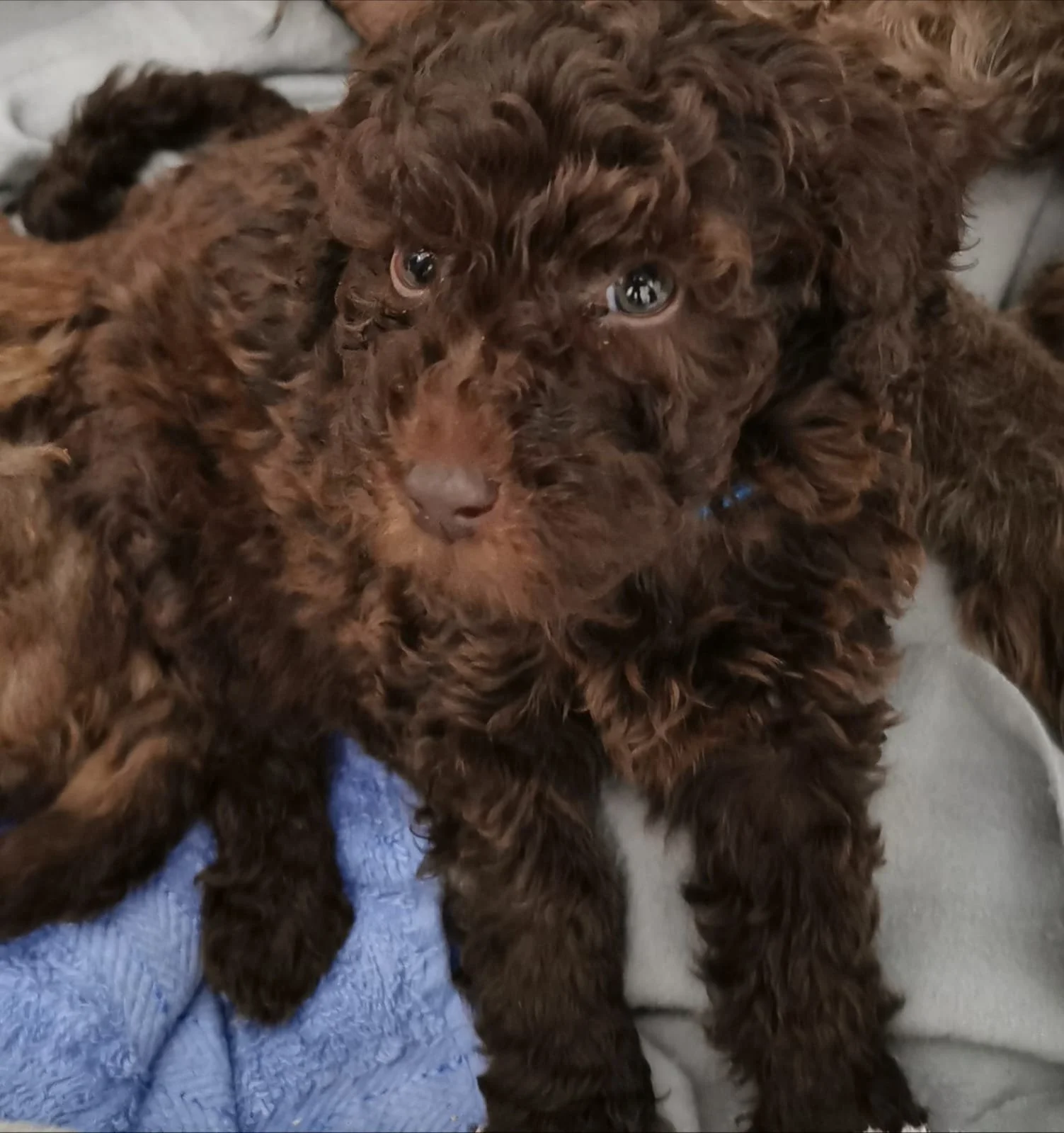 His name comes from the TV character “Maurice Moss” from The IT Crowd (Channel4) played by Richard Ayoade. As a puppy he has dark brown curls just like the character. It is also why I often refer to him as IT or Tech Support.